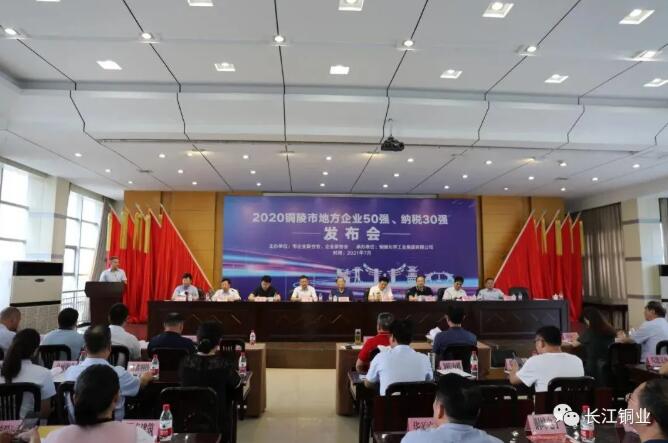 2021年7月6日下午,由市企業(yè)聯(lián)合會、市經(jīng)信局、市稅務局聯(lián)合舉辦的2020年度銅陵市“地方企業(yè)50強”“納稅30強”發(fā)布會在銅化集團會議室隆重召開。副市長王綱根,市老領導、市“四會”創(chuàng)始會長唐世定,市委宣傳部副部長章祎,市中小企業(yè)局局長朱永平,市稅務局黨委委員、副局長李軍等領導出席會議。發(fā)布會上,我司被授予“2020年度銅陵市地方企業(yè)50強”的榮譽稱號!