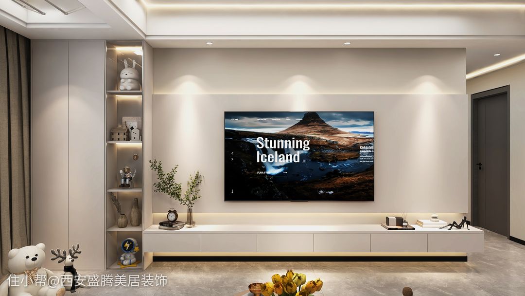 今天小編發(fā)的是2023年比較網(wǎng)紅款式的電視背景墻,懸空的電視柜,加上中部凸起的電視墻+上燈帶條,讓電視墻有著不一樣的簡約感,貼近當代人的優(yōu)雅風(fēng)哈。